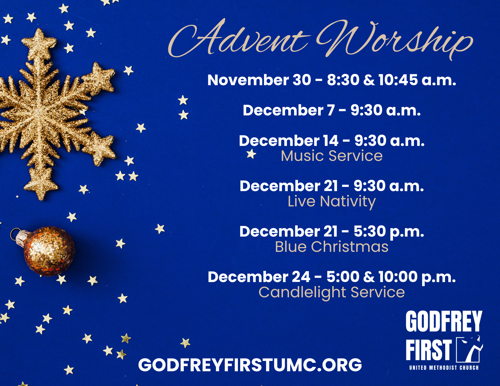Godfrey First UMC is a congregation with a long a storied history, dating back to 1825. We embrace our heritage while moving passionately and intentionally into the future, celebrating both traditional and emergent elements in worship. We strive to be a church not just IN the community, but FOR the community. Come be a part!